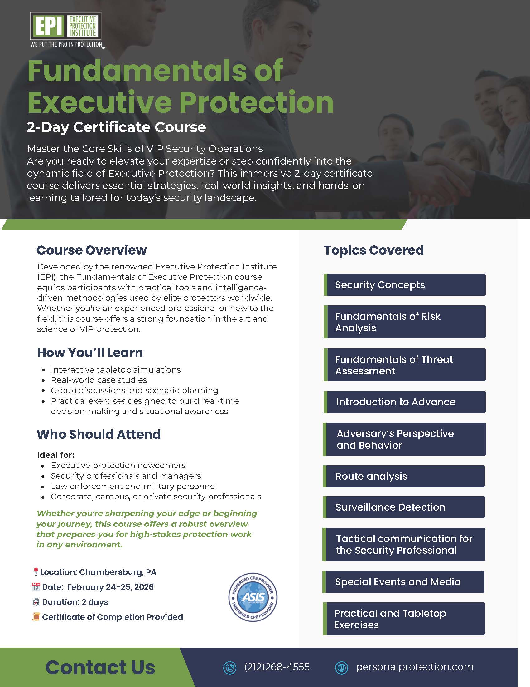 - Anyone seeking foundational knowledge in executive protection