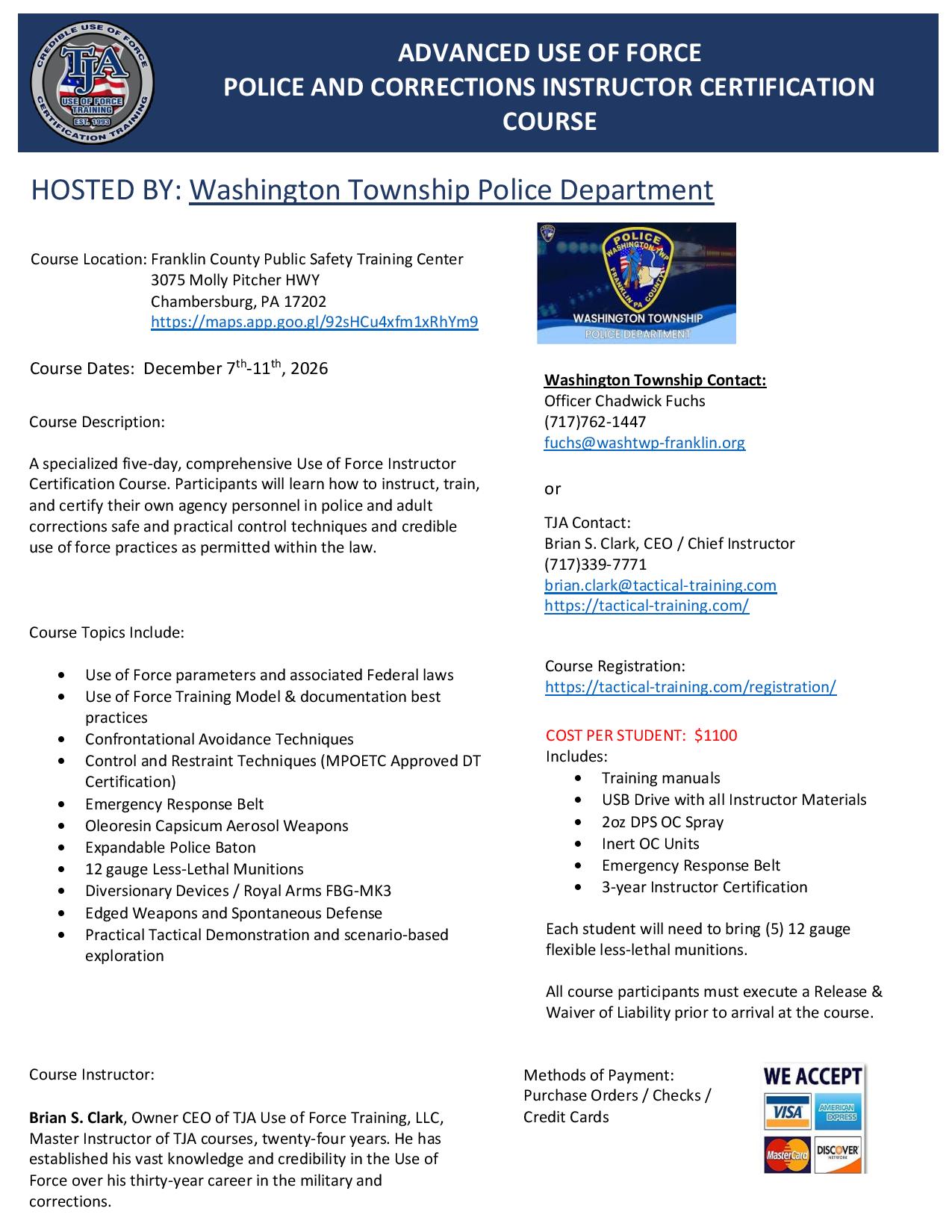 Each student will need to bring (5) 12 gauge flexible less-lethal munitions.